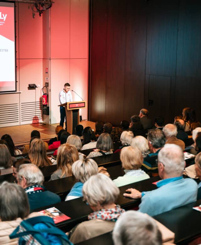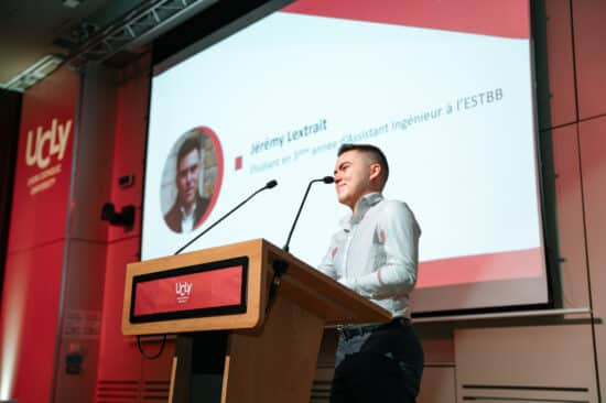 Jérémy Lextrait, étudiant en 3ᵉ année d'Assistant Ingénieur en Biotechnologies à l'ESTBB et bénéficiaire d'une bourse de poursuite d'études, nous a livré un témoignage inspirant sur son parcours et ce que représente cette aide dans son quotidien. Il a pu se faire porte-parole de ses camarades et adresser ses remerciements aux mécènes, présents dans la salle, qui rendent possible l'attribution de ces soutiens financiers.
